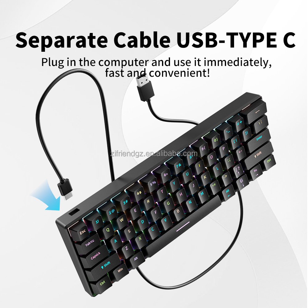 Professional gamers 60% Russian keyboard 61 key LED backlit mechanical keyboard Universal Serial Bus, suitable for computers, laptops, blue switches