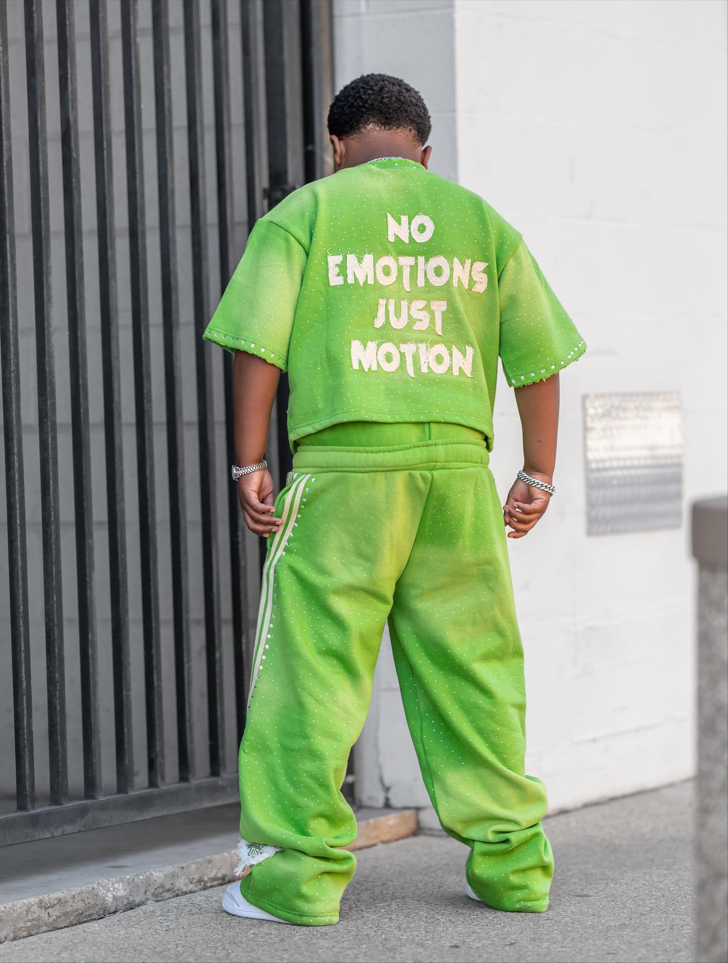 Customized appliqué patch embroidered two-piece children's tracksuit, 100% cotton, double waist striped sweatpants, 2025