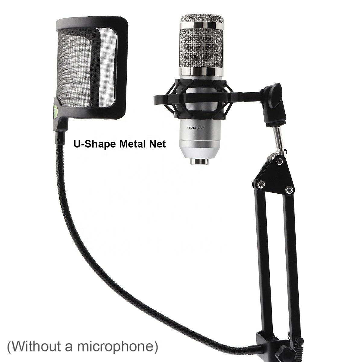 Microphone pop-up filter with U windshield metal shielding plastic material, used for recording in the studio