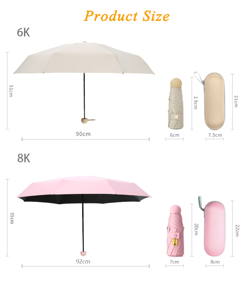 OEM New Design Pocket Promotional Capsule Sun Umbrella Portable UV Small Customizable Foldable Mini 5-Fold Umbrella