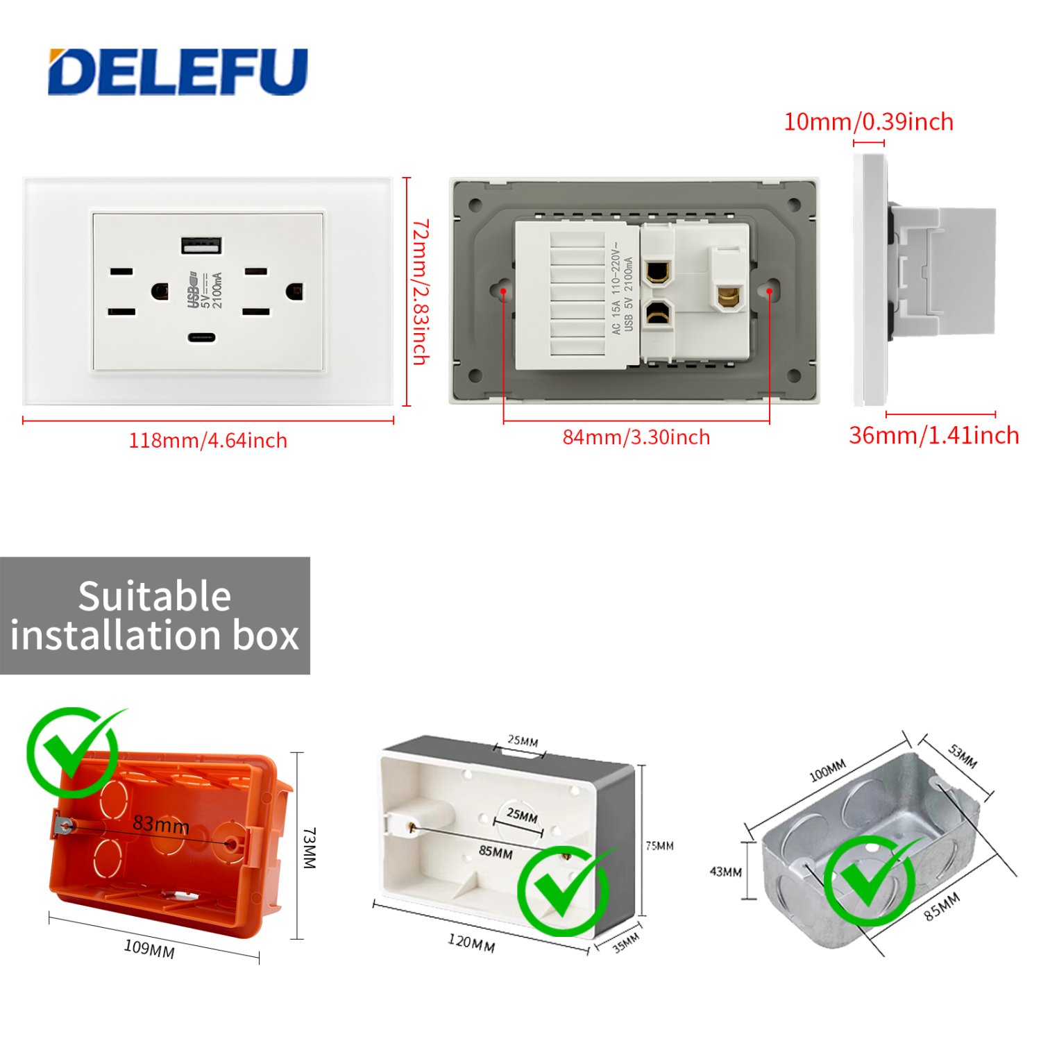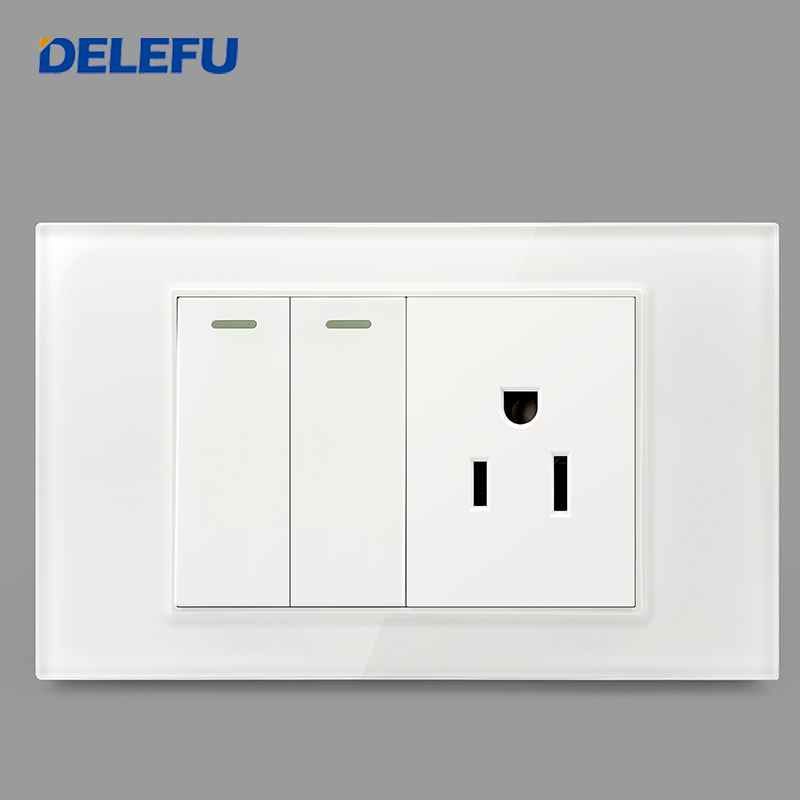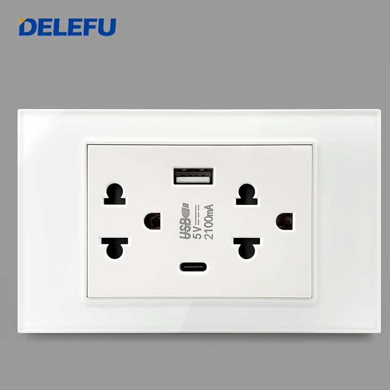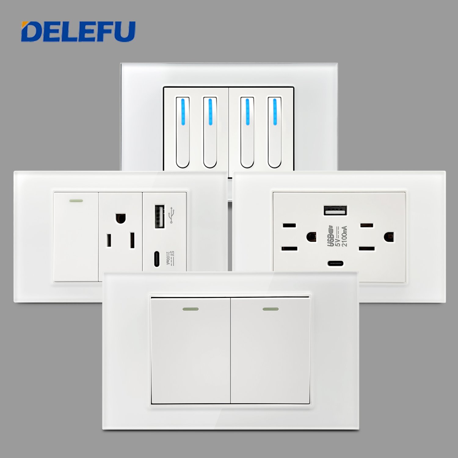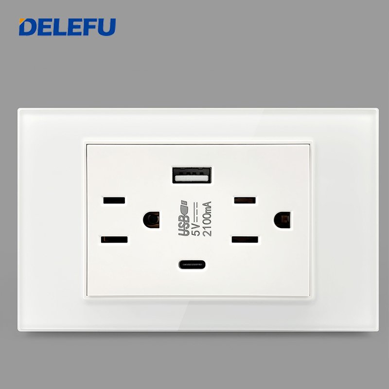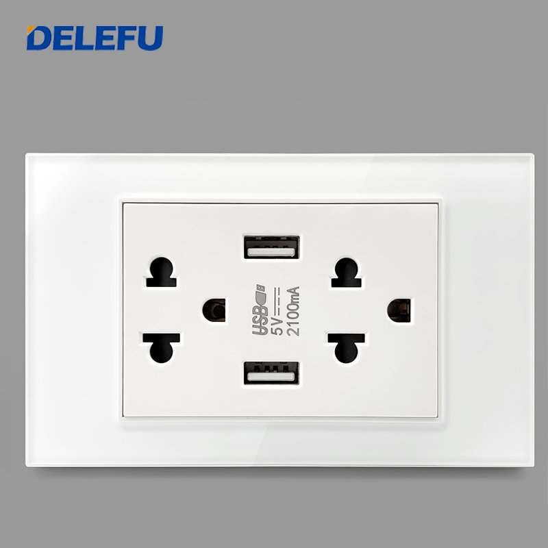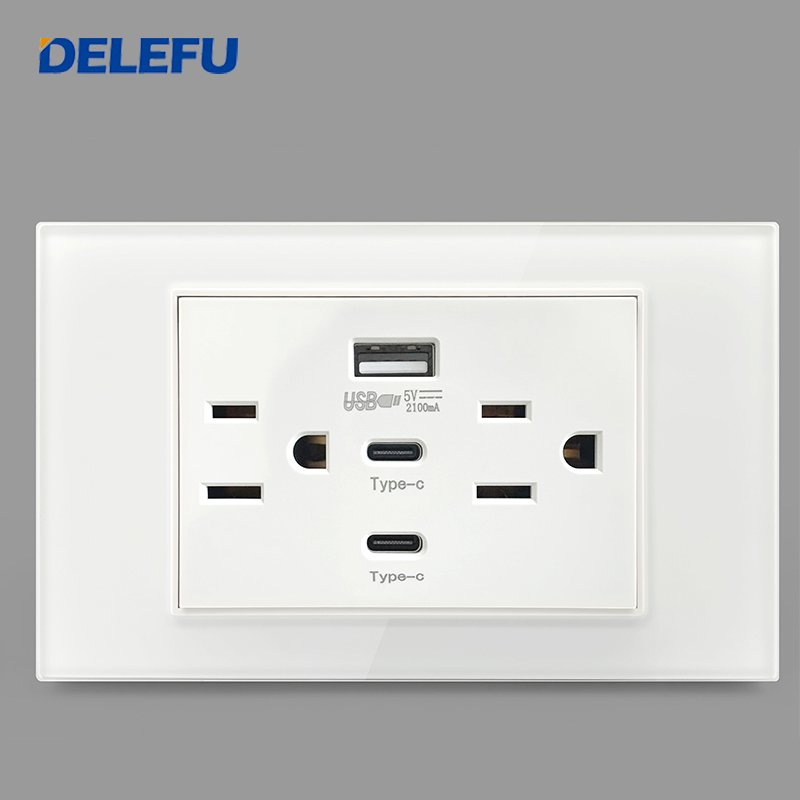 DELEFU white tempered glass universal serial bus American standard socket Mexican American plug 118 * 72 wall power socket light switch fast charging
