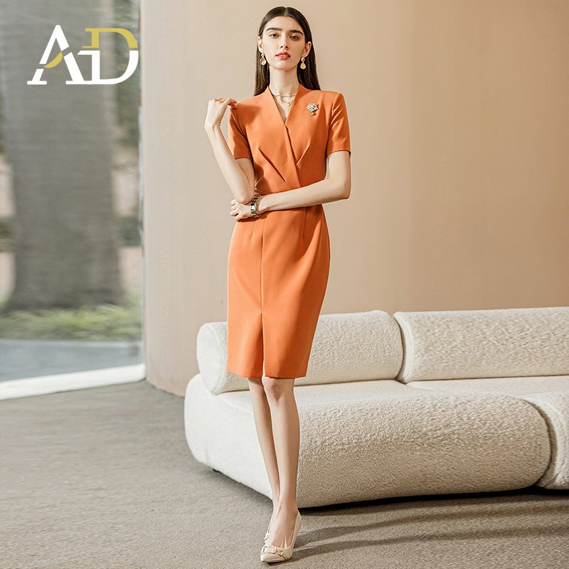 Manufacturer Wholesale Orange Ladies Dresses Office Wear Ad Dress For Women Formal