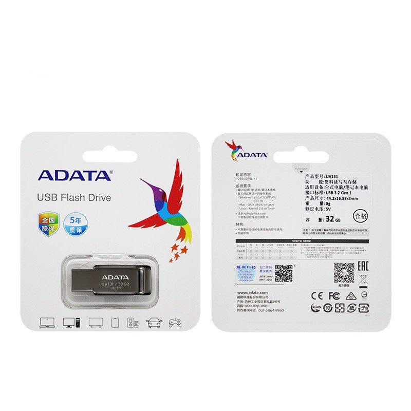 New Adata UV131 USB flash drive 16GB/32GB/64GB USB 3.1 metal USB flash drive, high-speed mini USB flash drive, portable USB flash drive 3.0