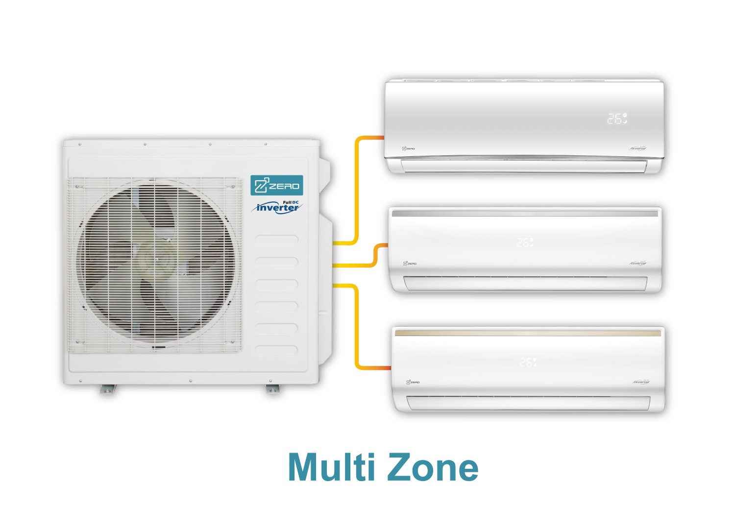 Zero brand 35000btu R410a split system air conditioner, heat pump inverter, multi zone mini split air conditioner, 30 room AC 3.5