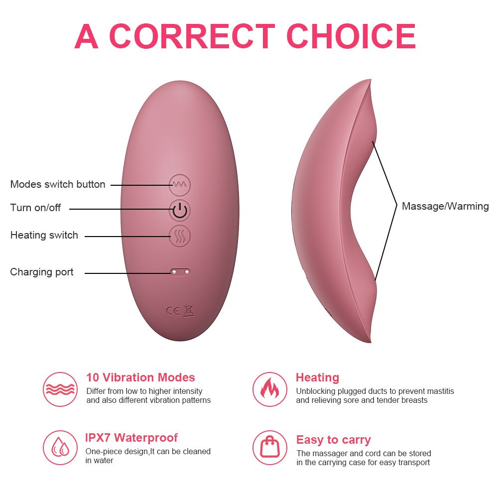 Medical grade liquid silicone heating and warming vibrator breast massager breastfeeding massager vibration