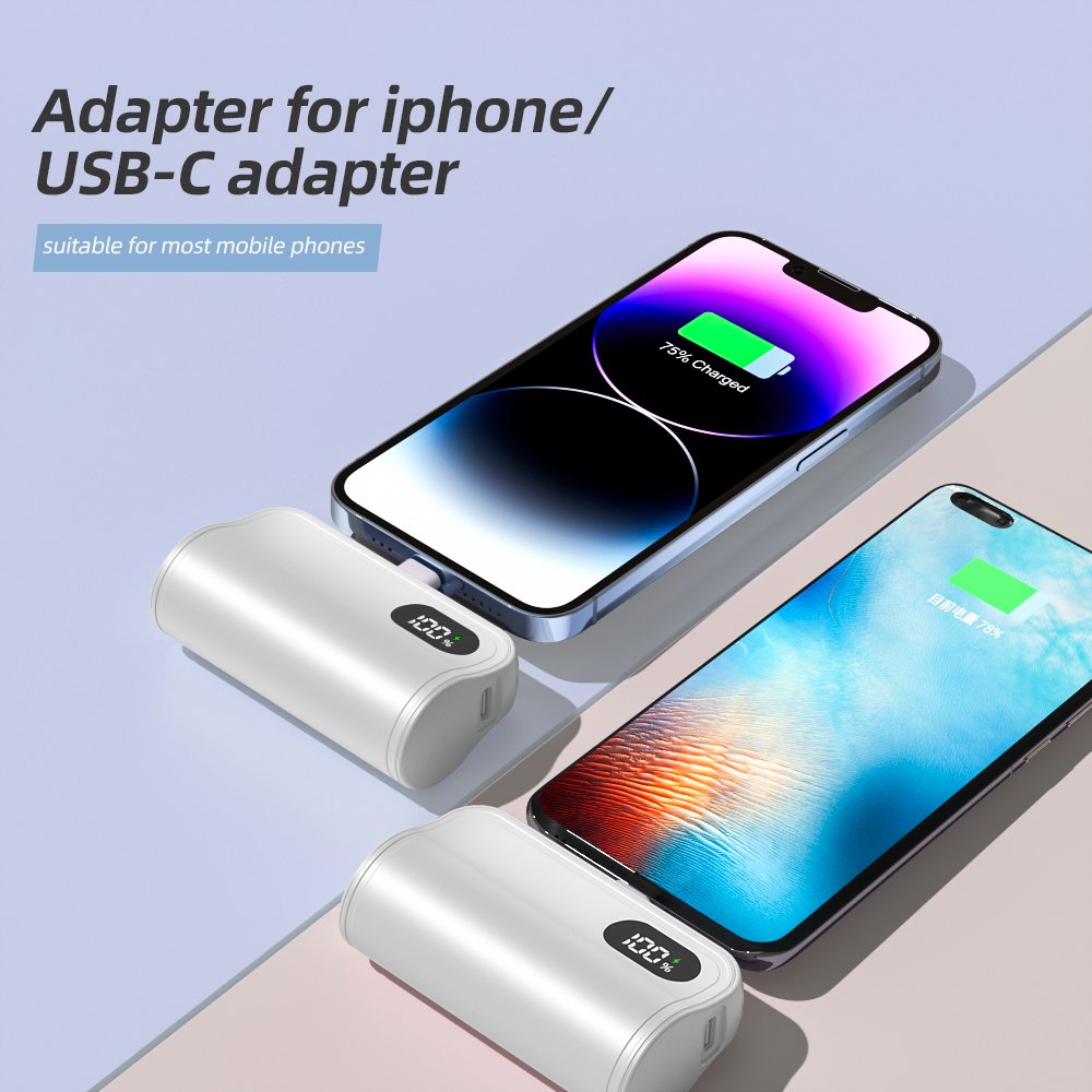 4000/5000mah Mini Tail Plug Digital Display Phone Holder 3 in 1 Mobile Powerbank Dual Head Built-In Cable Capsule Power Bank