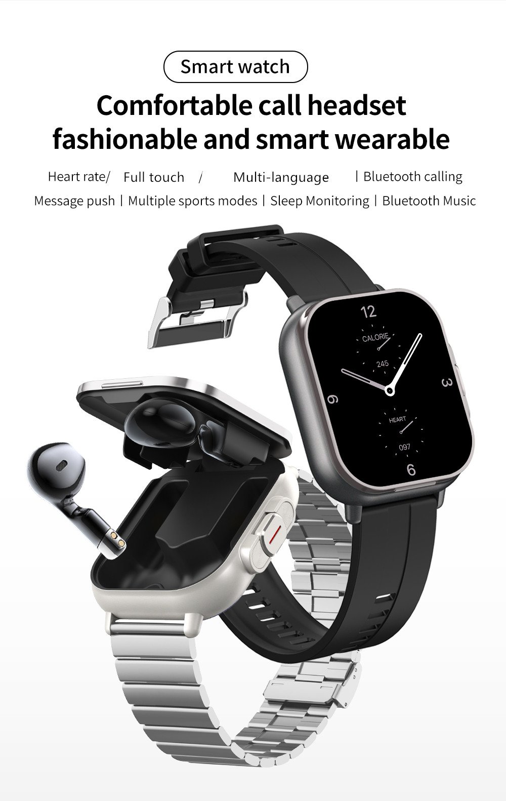 The cheapest smartwatch TWS earphones 2-in-1 hot selling high-quality health monitoring sports Relojes NFC D8E with earplugs smartwatch