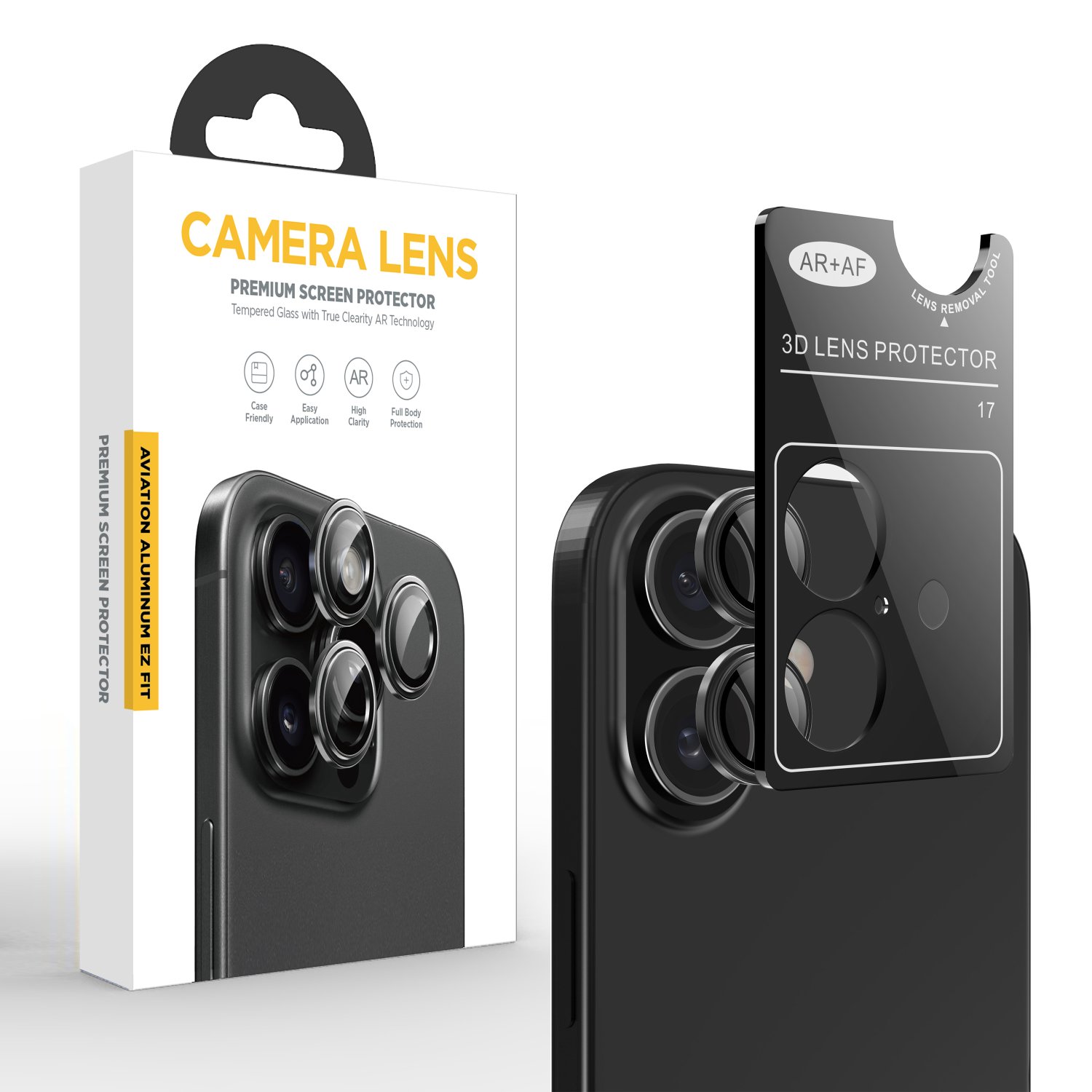 Aluminum ring high-definition protective film CD texture camera lens screen protector suitable for iPhone 16 Pro Max 17 Air tempered glass strip removal tool