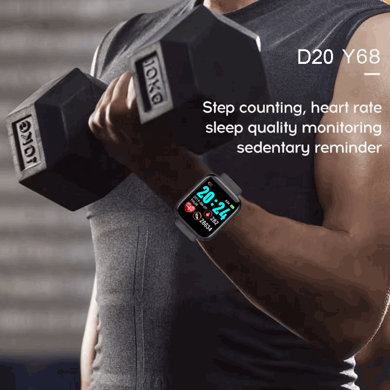 New Y68 D20 Men's and Women's Smart Watch IP67 Blood Pressure Fitness Tracker Bracelet Android IOS Compatible Smart Clock Square