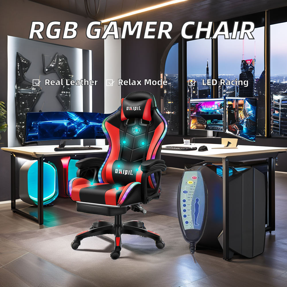 Ergonomic RGB LED racing game chair with speaker PU leather computer game chair and high-quality office chair from Hot Factory