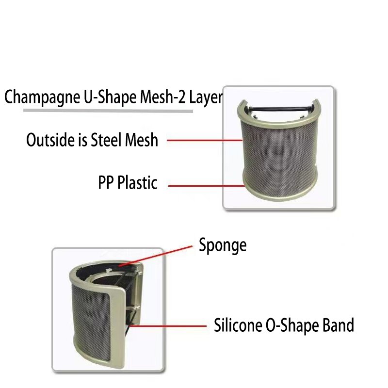U-WS Champagne U-shaped 2-layer mesh high-quality soundproof microphone popular filter windshield, used for studio or live streaming