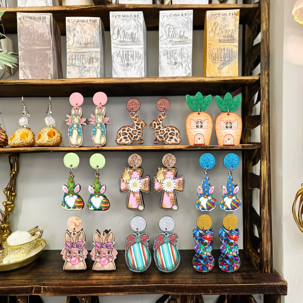 Easter Women's Trendy Acrylic Drop Earrings Titanium Plated for Party Occasions