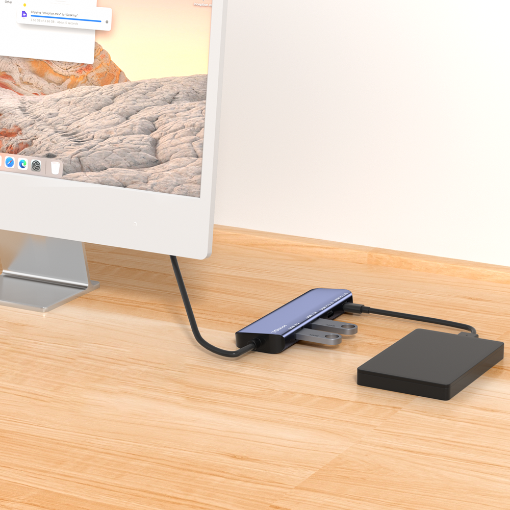 High quality USB 3.2 Gen 2 hub with 2 USB-A ports and 2 USB-C ports, suitable for laptops, desktops Mac