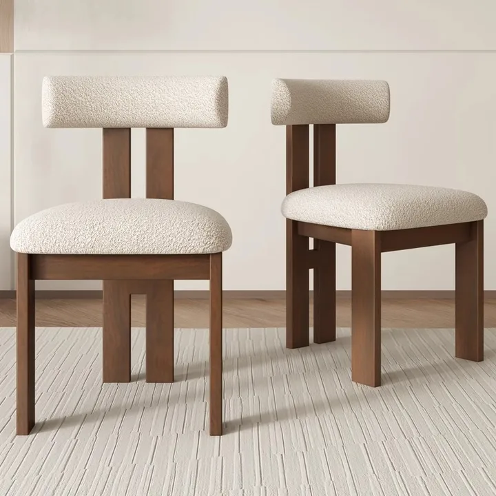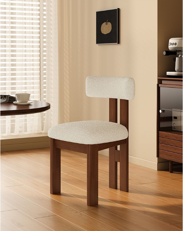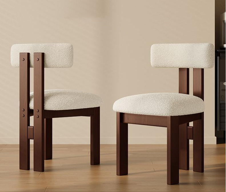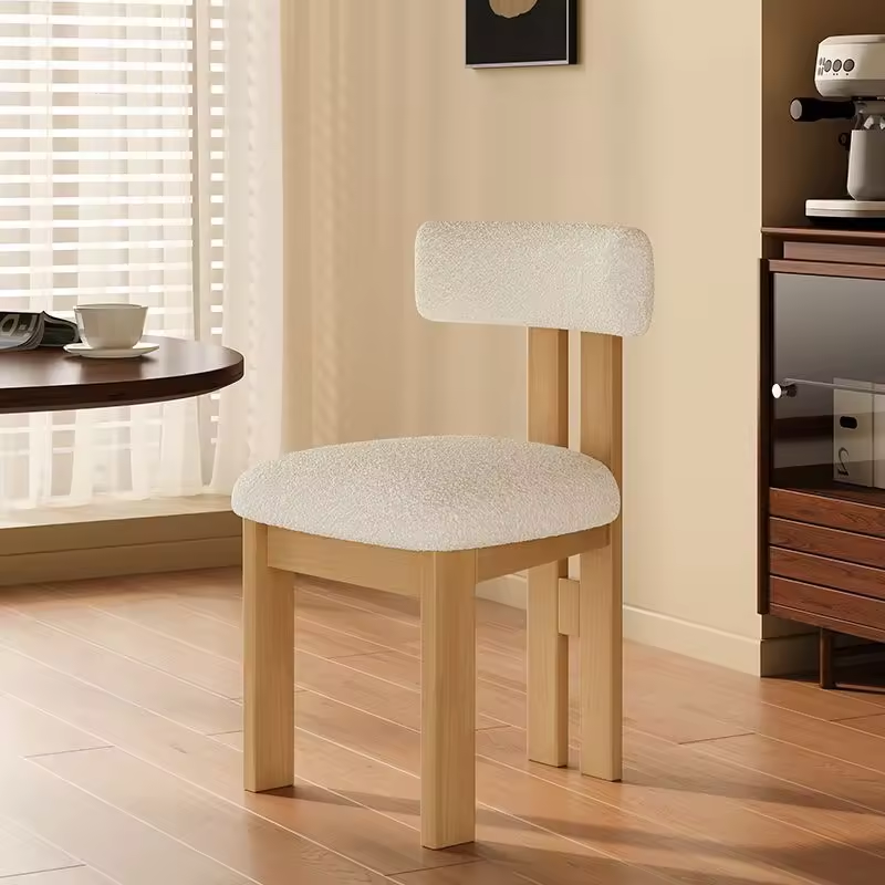 Nordic style solid wood backrest dining chair Wabi sabi style dining chair simple makeup chair