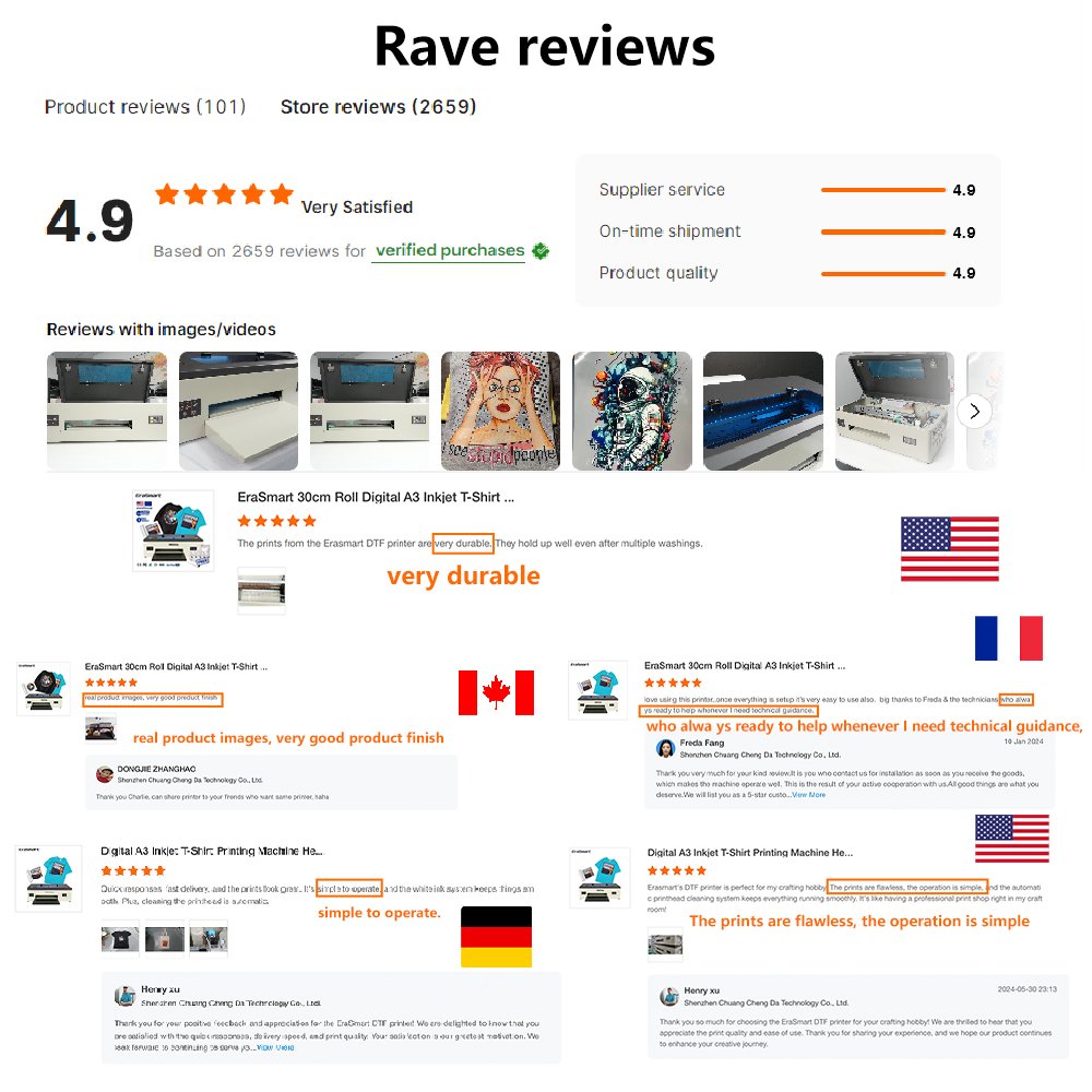 Free delivery EraSmart digital A3 polyester film t-shirt printing textile machine Dtf printing 30cm width Dtf printer with Xp600 head