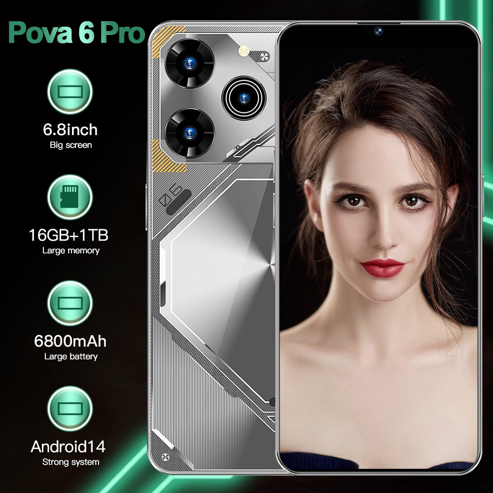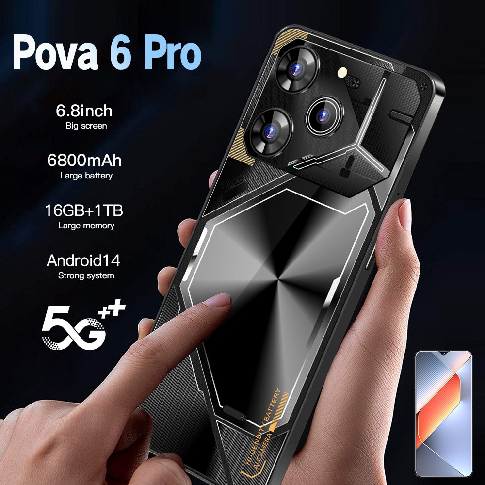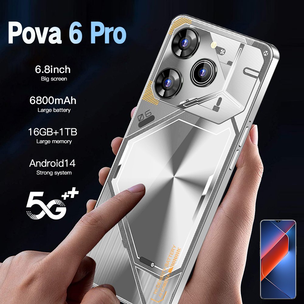 Pova 6 Professional 5G Smartphone with 16GB RAM and 1TB Storage for Long Battery Life, Dual Card Compatible with Mobile 5G Smartphones