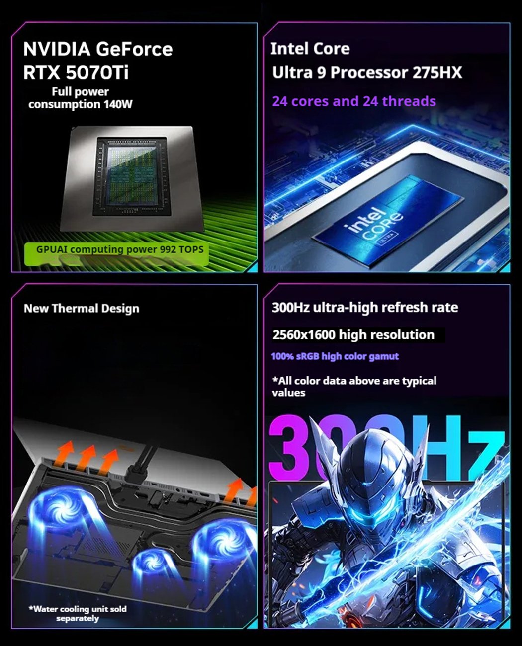 MECHREVO 16-inch Ultra 16-inch Gaming Laptop with Intel Hyper 9 Processor 275HX RTX 5070Ti, QHD 300Hz High-Quality Computer