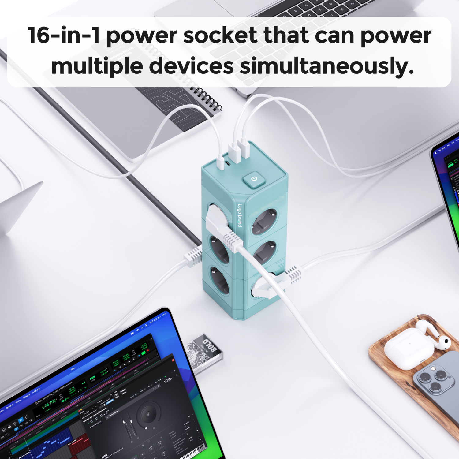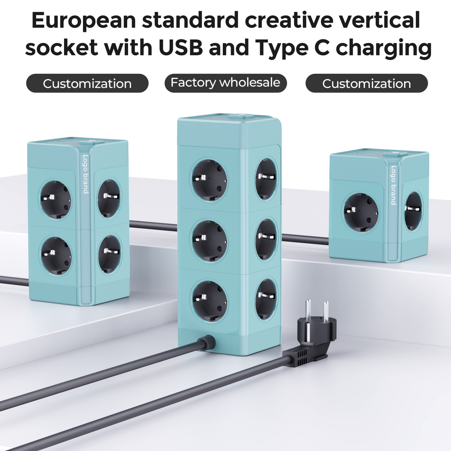 NEW Product Tower Multi USB Socket 4/8/12 Outlets Extension Sockets Multiple EU Standard with 2 USB-A and 2 USB-C
