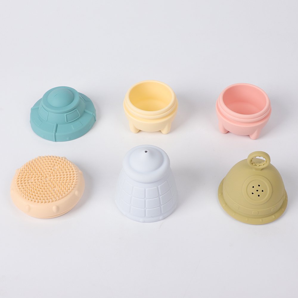 Customized silicone baby bath toy set with water spray function, spacecraft/UFO/rocket shape, suitable for both men and women, suitable for infants and young children, made of food grade material