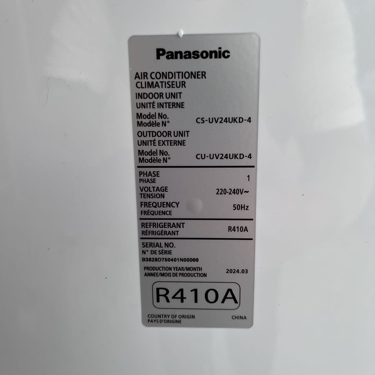 Panasonic split air conditioner 24000Btu 2 tons 3HP only cooling fixed speed on/off R410a 220V 50HZ CS-UV24UKD-4