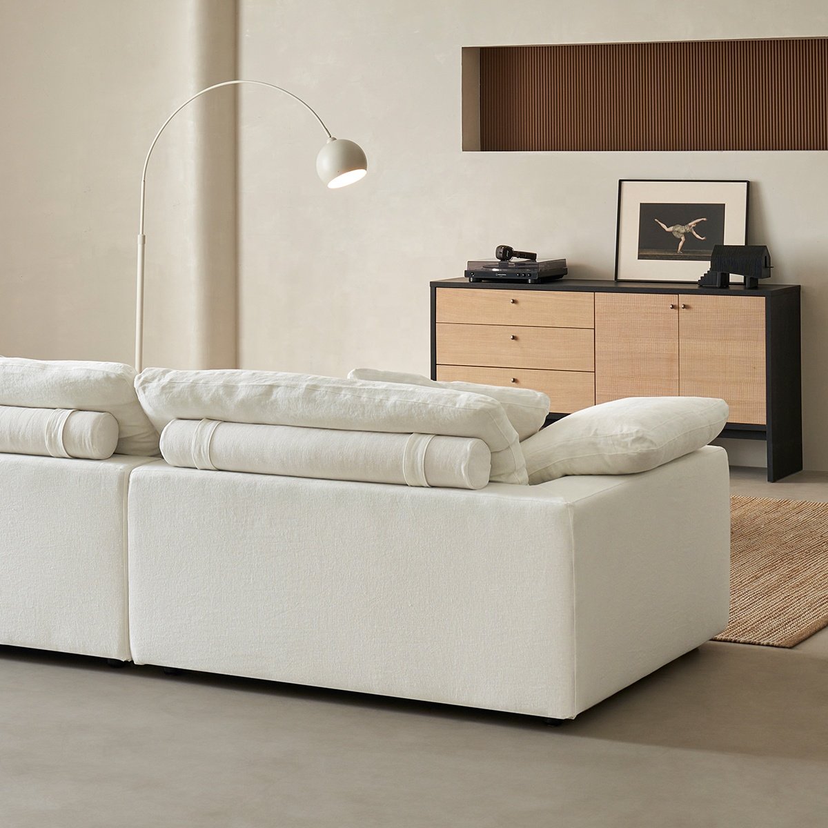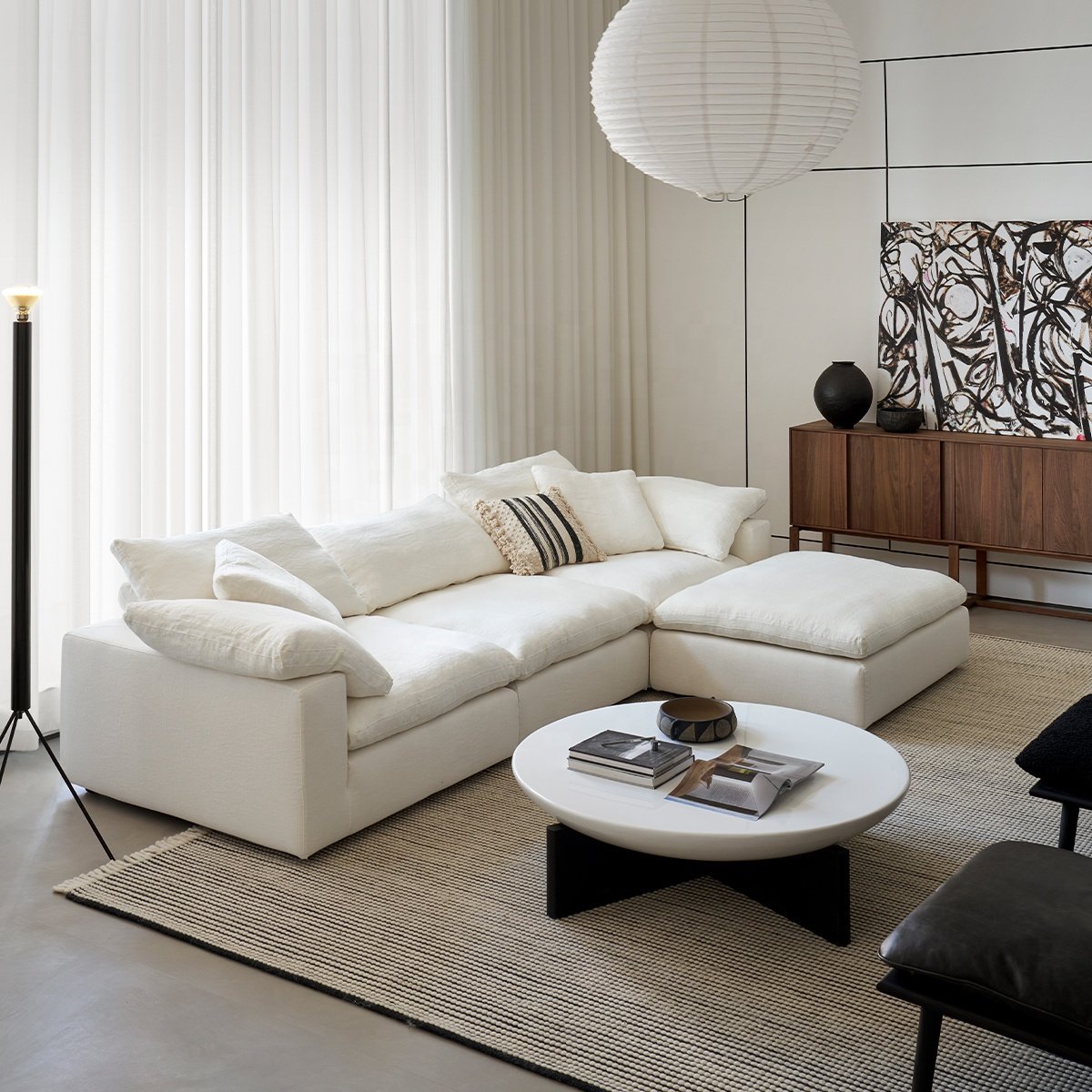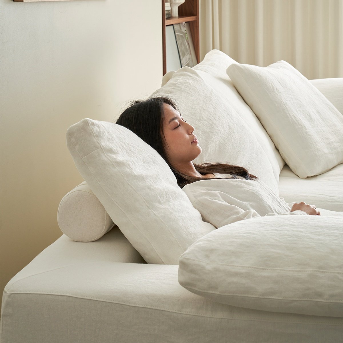 Zayshin Nordic Modern Luxury White Linen Fabric 2+3 Seater Type I Living Room Sofa Set Detachable Washable Modular Apartment Villa Cloud Sofa