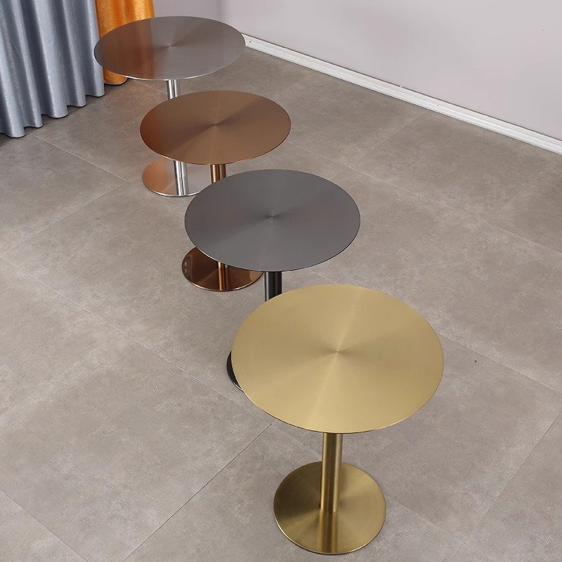 Luxury modern high-quality brushed silver stainless steel adjustable height dining table, dining room furniture, kitchen