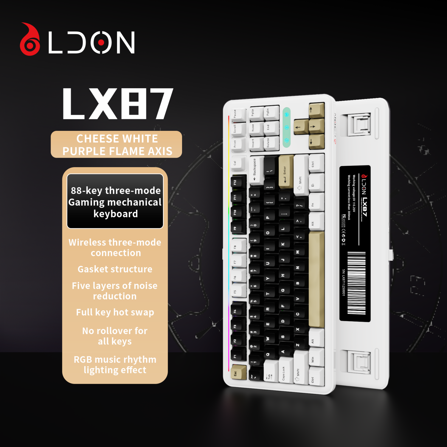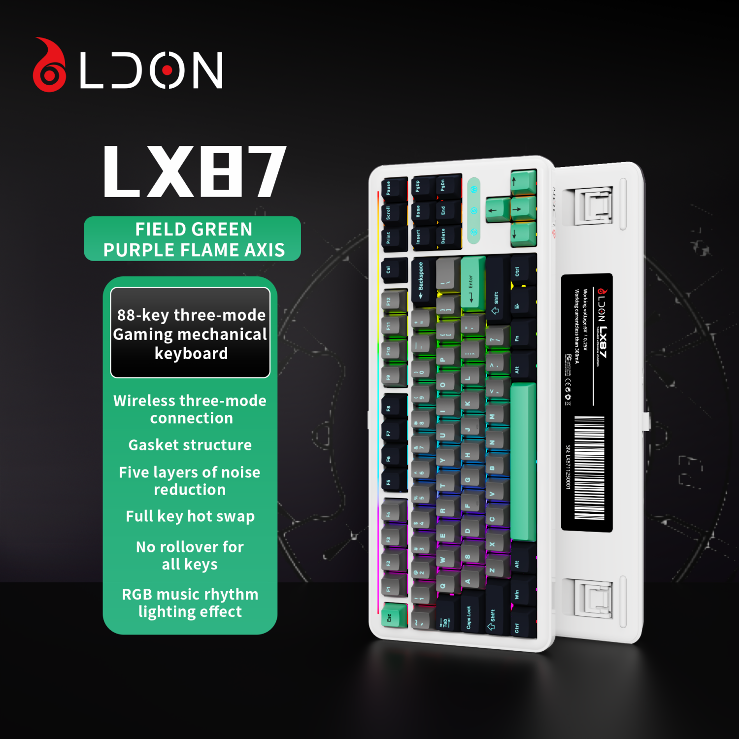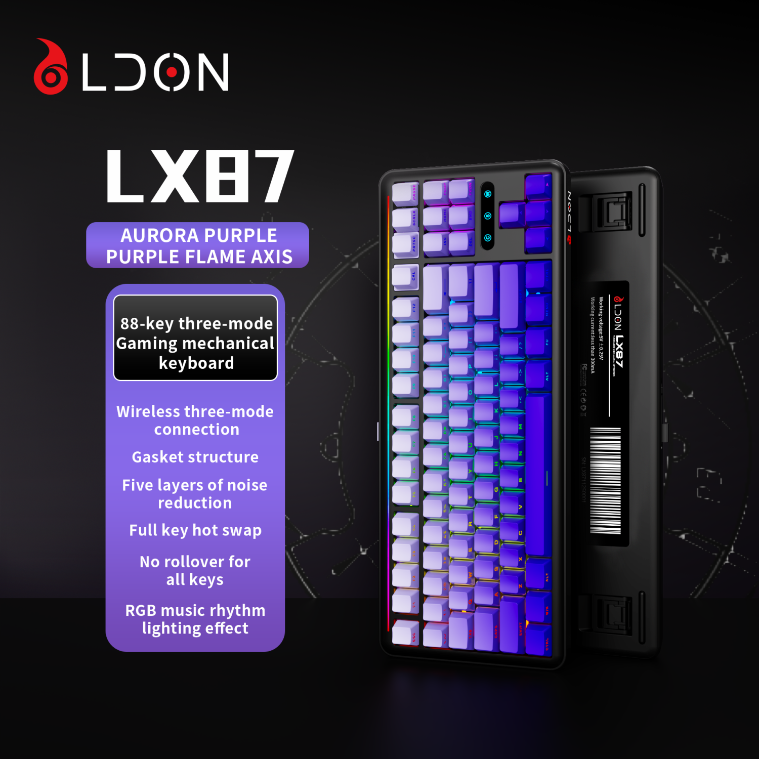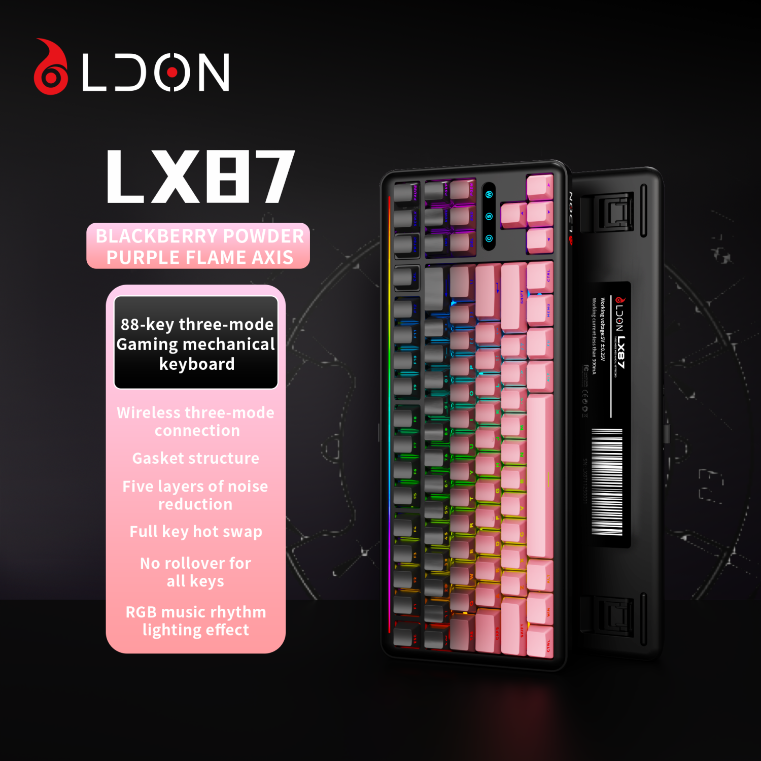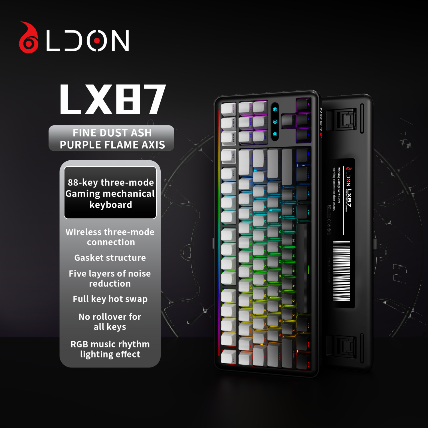 LX87 third-generation analog 75% mechanical keyboard rechargeable PBT keycap hot swappable RGB backlit 87 key gaming keyboard