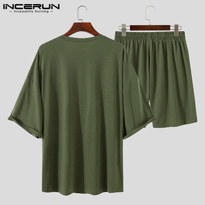 Beehoo INCERUN Mens Short Sleeve Soft Pajamas T Shirt Shorts Suits Sleepwear Suits Lounge Sets