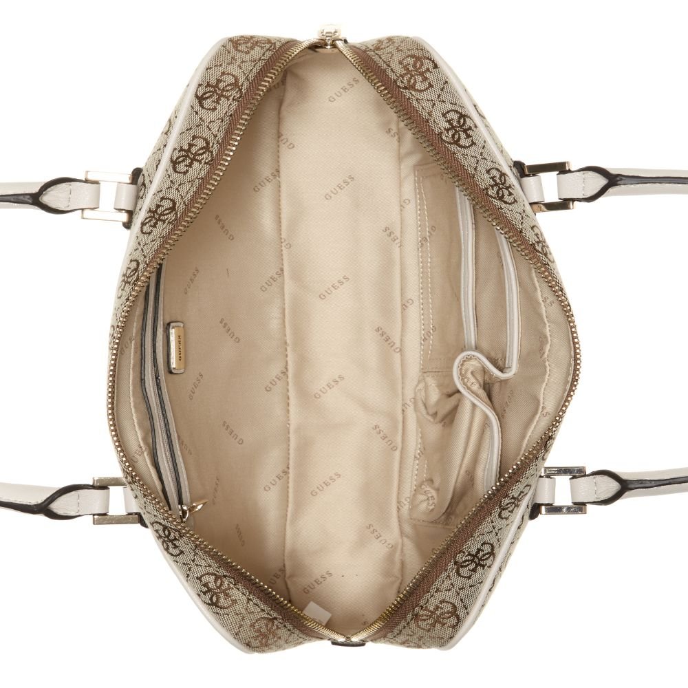 GUESS Women's Frankie Brown Logo East West Satchel Top Handle Bag