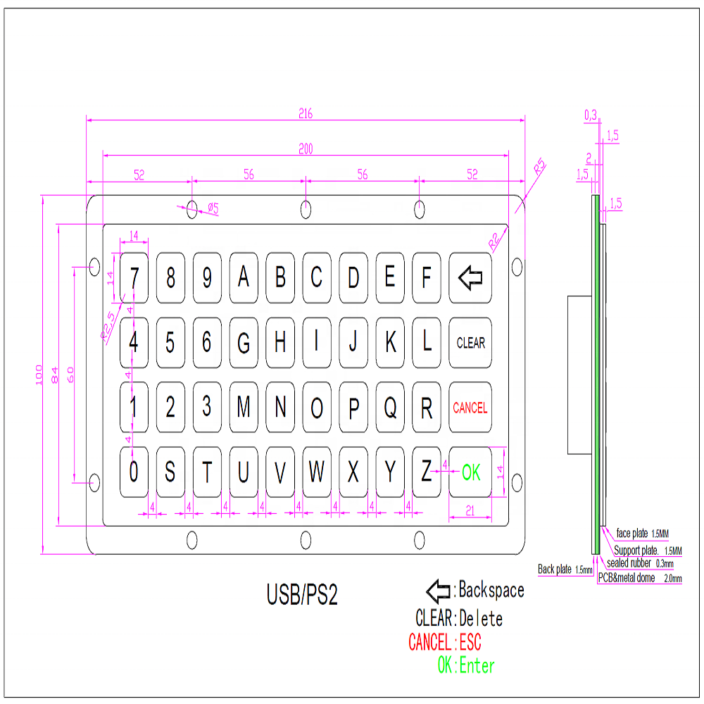 40 key waterproof USB industrial stainless steel mechanical keyboard with IP65 protection and CE/FCC certification, manufactured by Jiexin brand