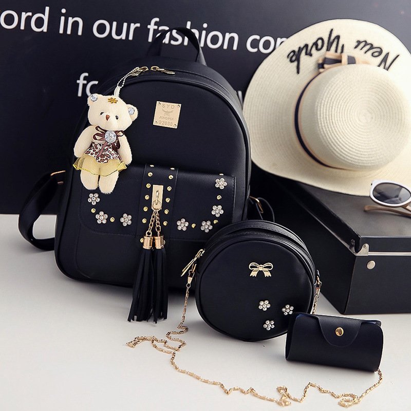 Wholesale backpacks, backpack sets, women's backpacks, luxurious, fashionable, waterproof PU polyester women's zipper buckle