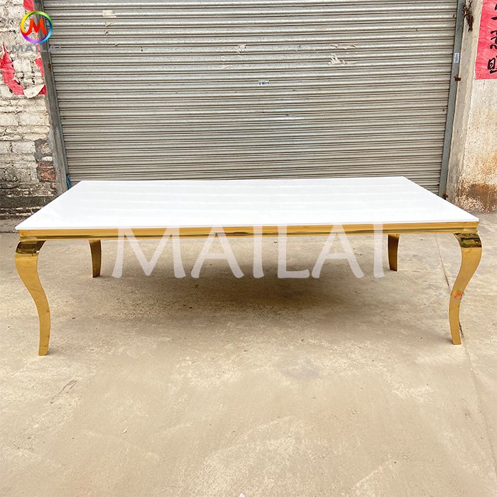 Hot selling hotel wedding banquet stainless steel glass banquet event gold dining table