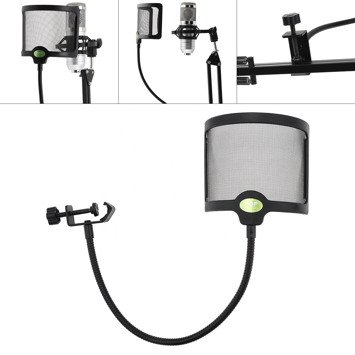 Microphone pop-up filter with U windshield metal shielding plastic material, used for recording in the studio