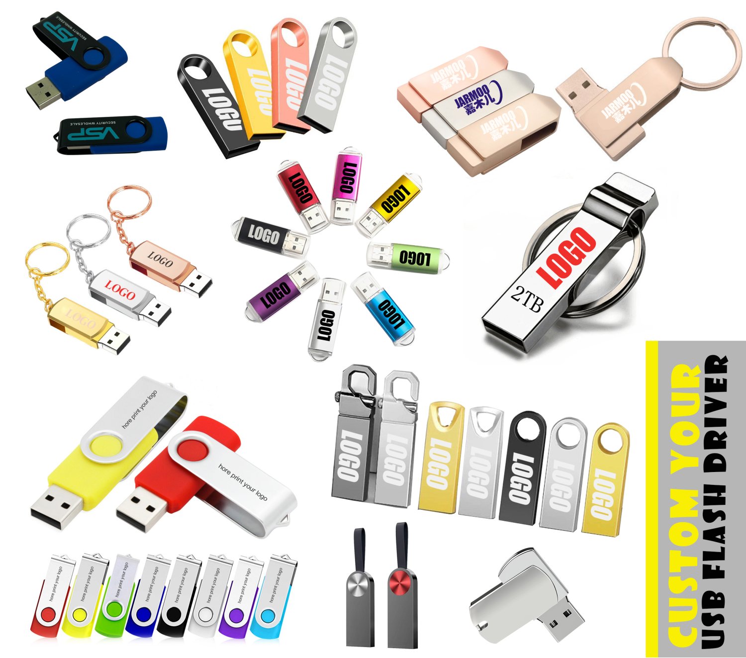 Promotional gift logo printing stick metal high-speed 3.0 USB drive 512GB 2TB 1TB 4GB USB drive promotion memory customization USB drive
