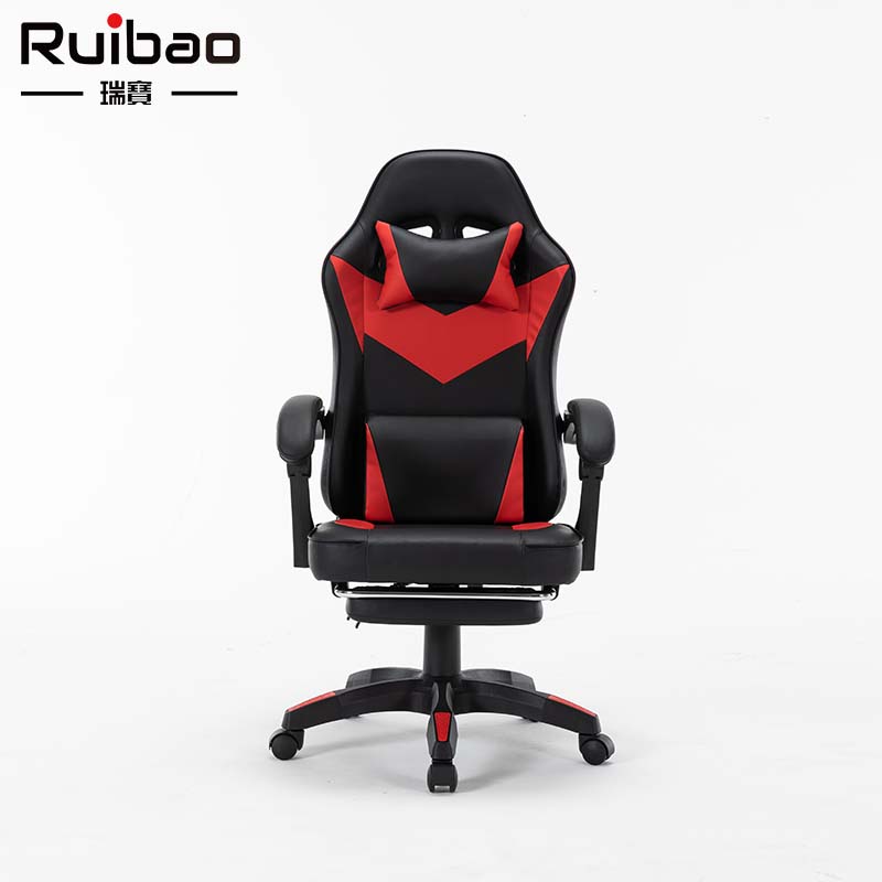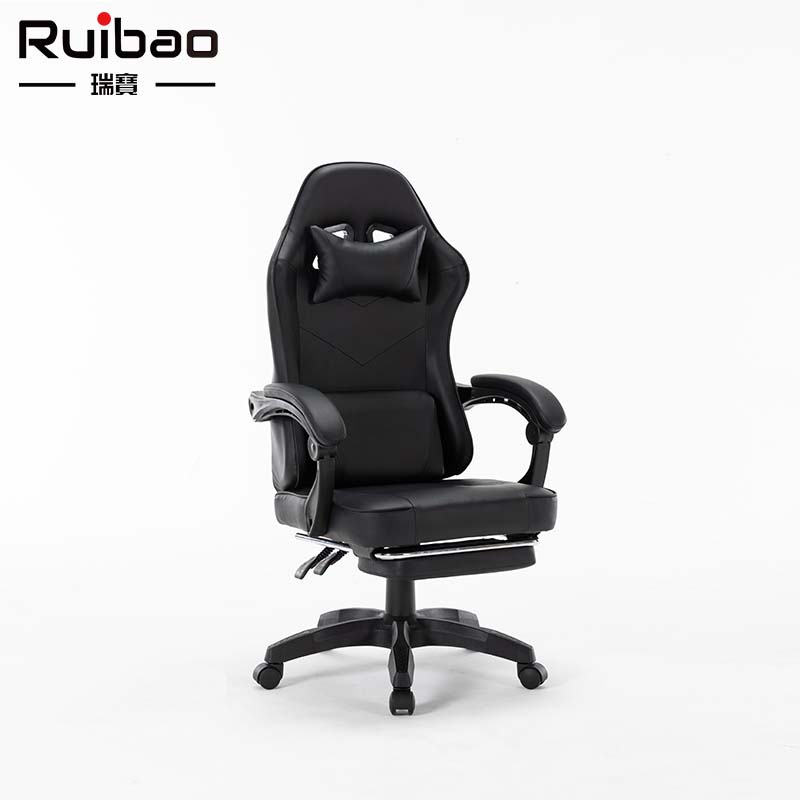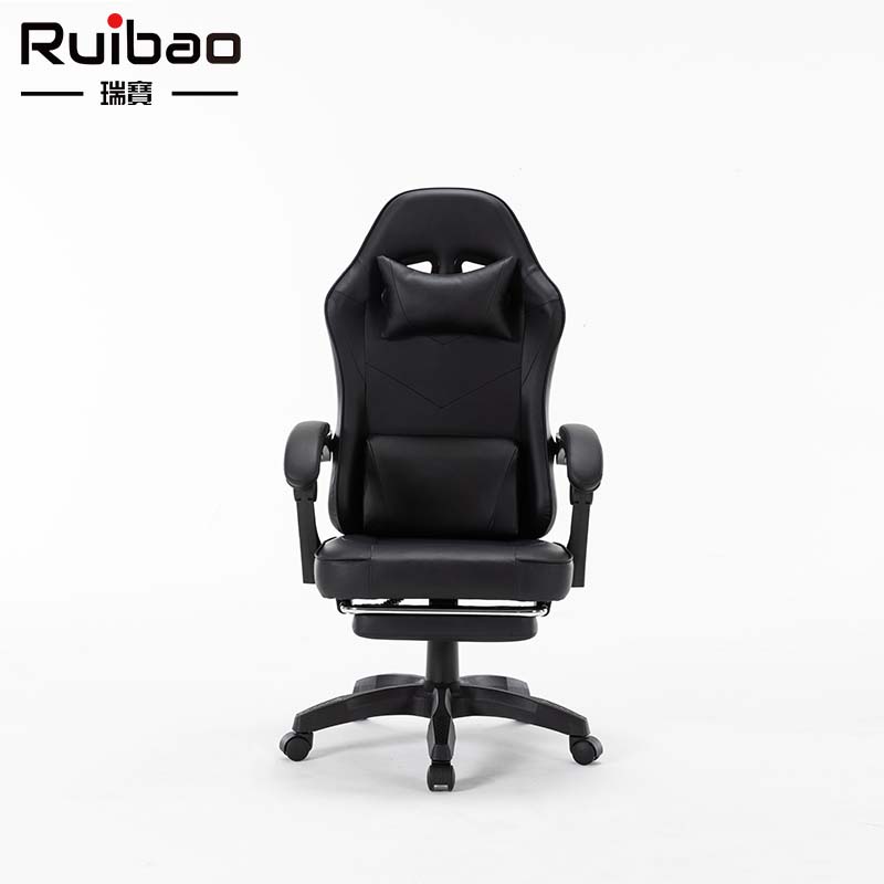 Wholesale synthetic leather all black ergonomic gaming chair with adjustable rotating footrest metal base, suitable for home offices