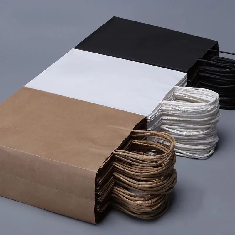 Customized printing white brown shopping recycling food bag with handle wholesale takeaway kraft paper bag with your own logo
