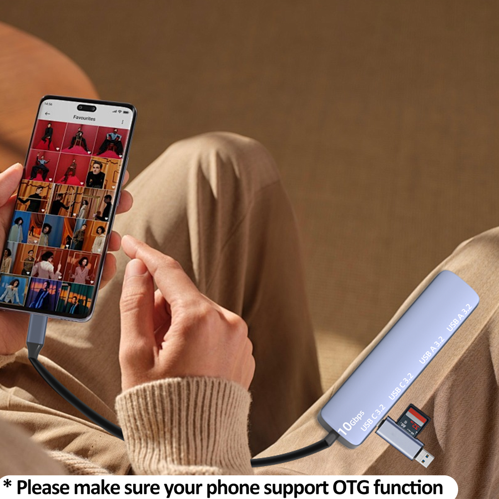 High quality USB 3.2 Gen 2 hub with 2 USB-A ports and 2 USB-C ports, suitable for laptops, desktops Mac