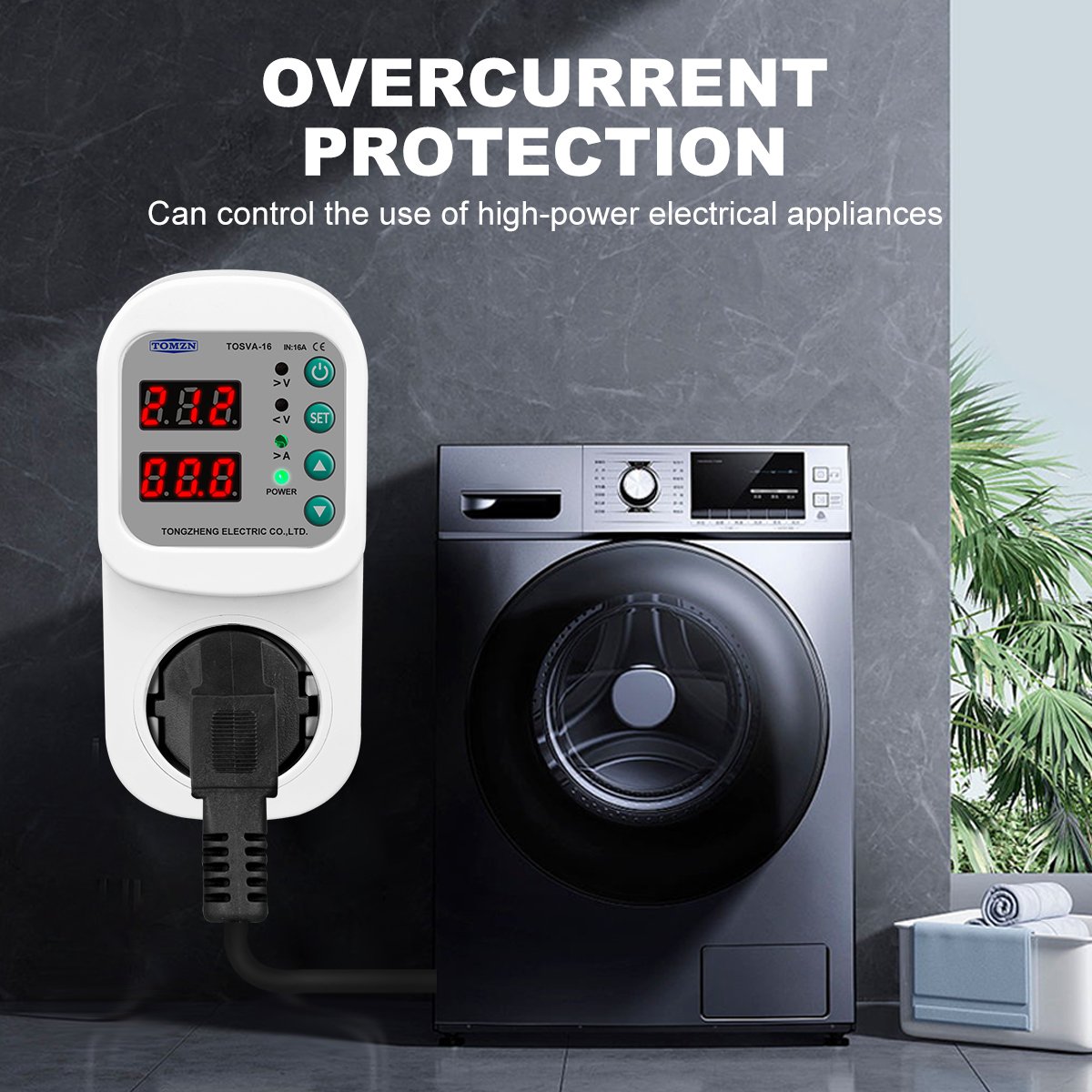 TOMZN automatic voltage and current protector socket AC 110V 220V adjustable 16A power surge protector EU plug socket TOSVA-16