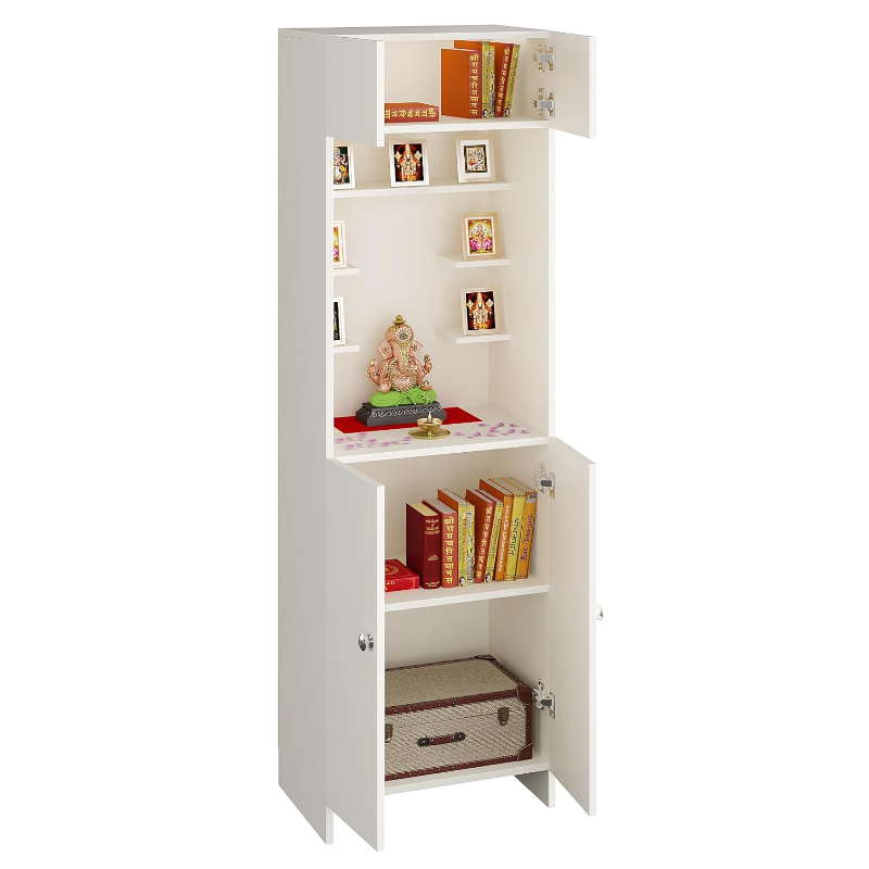 Customized white wooden wall mounted Pooja Mandir Family Worship Temple
