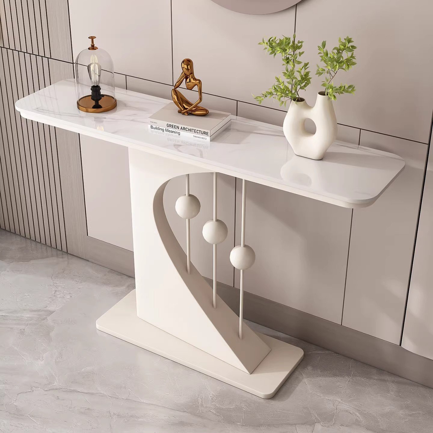 Entrance passage, hotel living room corridor, lightweight luxury stone slab corridor, table console, table entrance, cutlery cabinet