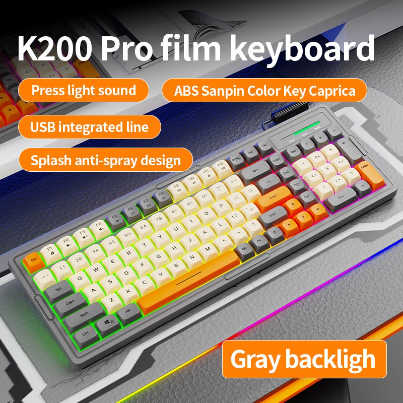 SOREX K200 new universal serial bus mechanical full-size dual-mode wired keyboard with LED backlit quiet keys, suitable for office learning and home use
