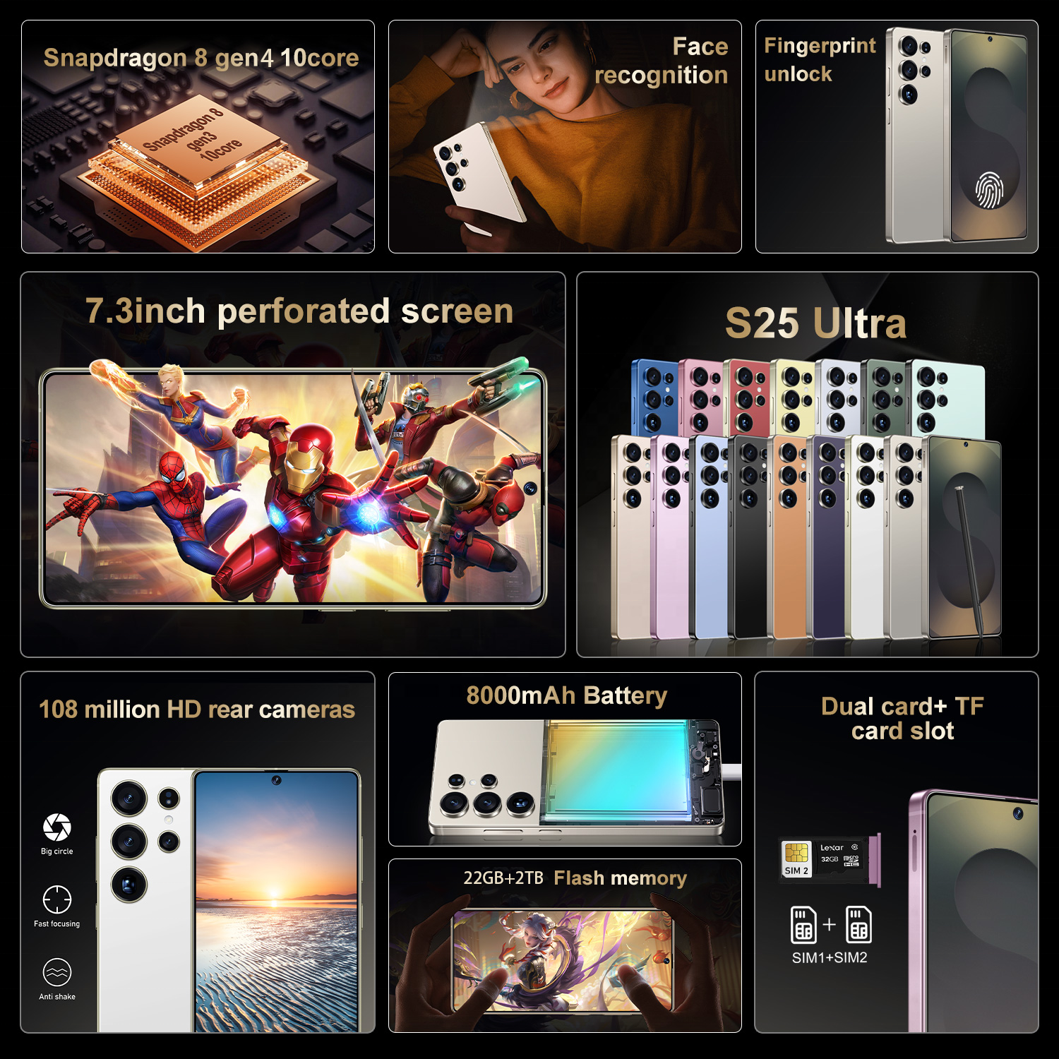 S25 Ultra 22GB+2TB High Version Smartphone 7.3 Inch Unlocked Factory Price 108MP Dual SIM Global 5G Android 15 Mobile Phones